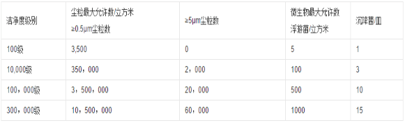 潔凈室(區(qū))空氣潔凈級(jí)別表